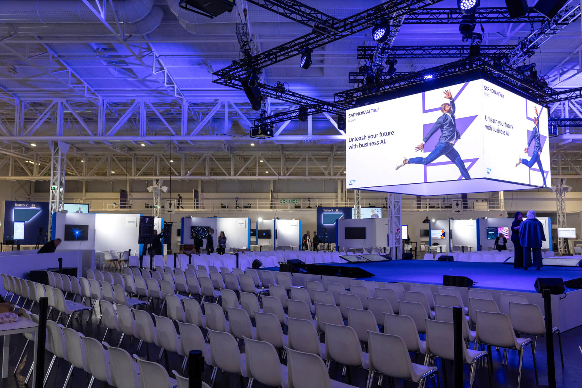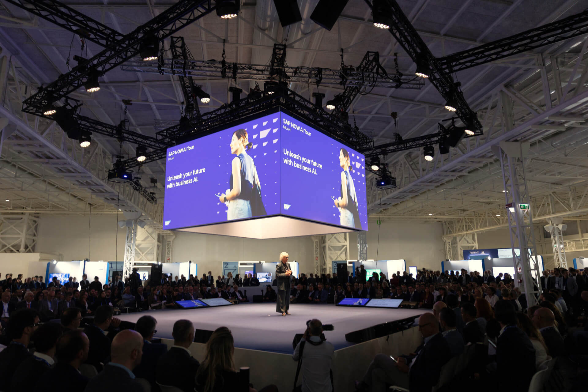 Le strutture, le tecniche innovative di produzione e l'accurata realizzazione, hanno creato un ambiente funzionale che ha accolto più di 1.900 visitatori, oltre 100 sessioni, panel tematici, speed pitch, demo live e testimonianze dirette di clienti e partner. L’evento, guidato dal tema “Unleash your future with Business AI”, ha trasformato visione e ispirazione in progetti concreti, con il debutto di un nuovo “Experience Center”, cuore pulsante del forum.